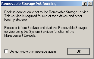 Removable Storage. Manages removable media, drives, & libraries. If you have such devices, e.g. Tape drives (not CD\DVD\Floppy drives), then this set to Automatic. Otherwise you may leave it on Manual. NOTE – If set to Manual you will need to Start this service before using the Backup program with such backup devices.
