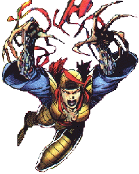 Ashley W - Ashley aka Lady Death strike, She is into a lot of things that I have been into as well. Such as, Angel, Buffy, Smallville, and Powerpuff girls! Ashley's pretty cool in her own way, and i'v come to respect her better because now i can see what she is really like, and she's not al the different from what I am used to, She travels a lot and has been all over Canada, she has a infatuation with lightening as well....Ashley seems like a tough chick at times, but also knows when to calm down and help her friends, like Vic. Which makes her ok in my book...