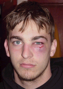 (April 10th) Well, the injuries keep on piling up. Matt went down today with a nasty eye injury seen to the left. Unfortunately, not many people came to practice today. We really have a lot to do in the next three weeks, and I'm not going to have any time to do much of anything. At most we can go out once a weekend for the next two weekends. Out first game is less than three weeks away. We need to get our player cards in very soon, so I need money from many people very soon. I wish I had time to make player profiles and other fun stuff, but I really won't until the summer starts. So, anyone with some time who is willing to help out doing something can let me know. Since time is tight, I need to know in advance when people can make it to practice so that I'm not scheduling a time when only 4 people will be there.