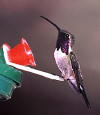The Lucifer Hummingbird is found on agave-covered foothills in the mountains near the Mexican Border. It has a decurved bill and a forked tail.