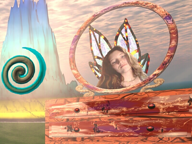This is Her perspective. She sees the reflection...and the mountain....why a mountain? i dont know. Next