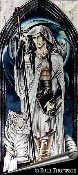 Leydalu stands approximately 6'3, his hair reaches his ankles. Dark blue eyes so deep and swirling you could practically swim in them. He was well muscled, not tall and lenky like most elves. He also tended to be much stronger, the elves never relied much in strength, he seemed to adore his physical abilities. As well as his mental ones. When not in a cloak he was either in robes, or something with which he could prowl the woods in comfort. Primarily black suede boots and black pants, light cloth for easy moving. He didn't wear a shirt if he didn't have to, both to show off his different physique, and because he didn't really like to wear much clothing.