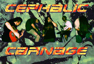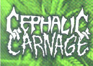 If you ever walk into a room and get this strong smell of marijuana and see four guys stoned off buds... you are mostly walking in a room with CEPHALIC CARNAGE, which is a Hyrdo Grind band from the Denver, Colorado area. This is definitely a band that is worth hearing so please check out this page and remember to sign their guestbook and tell them they are awesome i am sure Mr. Sativahead himself would love to read that!! And if you want to check out the CD you can email them to the address below or mail them by snail mail: