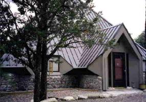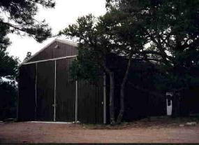 storage shed. Nestled in the trees to create a feeling