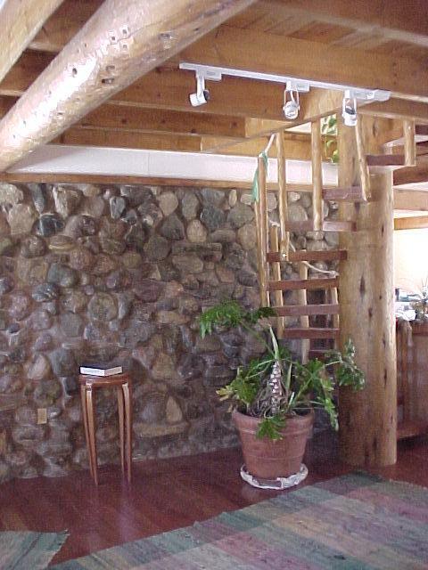 - Upstairs bedroom, via spiral staircase in living room, allows