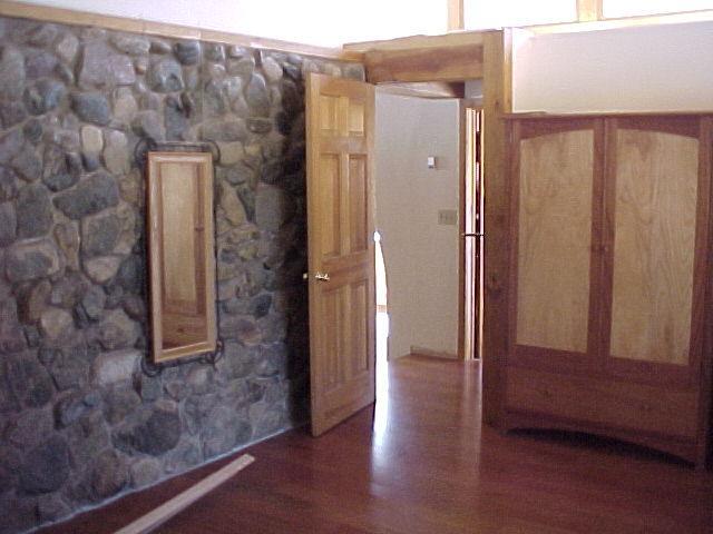 and hardwood cherry floors; two custom-made wood armoires in bedroom.