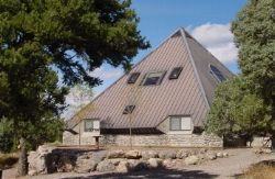 & Unique Click for more photos The Pyramid House is built with regard to sacred geometry for optimum energy flow. Bright, open and harmonious, this 2000 sq. ft., 3 bedroom, 2 bath custom home is on 1.5 acres and is completed by a large 2-car detached garage and a 1500 sq. ft. storage/ RV garage. The unparalleled design and strategically placed window skylights offer captivating views of the sky, valley and mountains. The 30' peak skylight is capped with glass and copper. Interior includes marble floors in the bath, entry, kitchen and wood stove area. The living area, bedrooms and expansive loft are carpeted. Efficient kitchen includes dishwasher, electric stove and side-by-side refrigerator. Large mirrored closets doors are in all bedrooms. One bedroom can be used as an office - it has a Murphy bed. Cherry stained maple wood finish throughout the house. Home features two large 60" remote controlled fans in loft, five ceiling-mounted stereo speakers, spiral staircase to loft, laundry room, 2 benched entries and radiant in-floor heat. NOW $327,000 |