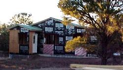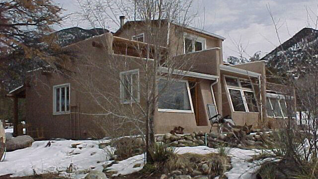 1316C Whispering Winds TrailClick for more photos Unique complex includes 1200 sq. ft. 1 bedroom, 1 bath house, guest casita, workshop and storage shed on 7 acres in the Grants. Natural breathable straw bale house with earthen plaster walls, custom doors, windows and cabinets. Self sufficiency ensured by large photo-voltaic system and superb solar heating with backup wood stove. Very private with panoramic views! $164,000 |