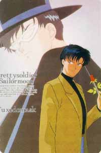 Tuxedo Kamen(Mask) is also known as King Endymion of the Future, lover of Princess Serenity (Neo-Queen Serenity ) and father of Neo Princess Serenity (Chibi-usa) as well as Chiba Mamoru. Like Usagi, he has appeared in NEARLY every episode since Episode number one. (Minus the time Galaxia stole his star seed and when he went missing a few other times). He annoyed Usagi at first by calling her "Odango Atama" which literally translates into Dumpling head because of her odd hairstyle. (In Chinese, it is Bread/bun head) Yet over time he grows fond of her. When Usagi was first found to be Sailor Moon, he appeared as the mysterious black caped hero known as Tuxedo Kamen (Mask) who wears a black tuxedo, black hat, white mask and carries a cane with him. When he makes his grand entrance, he throws a red rose which supposedly has the power to momentarily stop a villain from attacking. It serves either as a distraction or a temporary weapon that actually wounds the bad guys. There are instances where he also uses his cane to fight like a sword. Not until up to the moment Usagi discovered that Tuxedo Kamen and Chiba Mamoru were the same person, does she realize that she is in love with him. (When she discovers that they were lovers in the past during the Silver Millenium). Usagi calls him Mamo-chan and he calls her Odango Atama or Usako as a nickname. Endymion is also the protector of the Earth. In the first half of Sailormoon R, Mamoru became Tsukikage no Knight (Moon Shadow Kight) as his actual body was just recently reincarnated after his death in the fight with Beryl and the Black Moon Family and he had lost his memory of his identity. So instead, Tsukikage no Knight (which is the essence of his soul) shows up and throws a white desert rose at the enemy instead. He is dressed in desert robes like somebody who jumped out of Arabian Nights and basically does what Tuxedo Kamen does, as a slightly different character this time to battle the cardians...Anyways, afterwards he regains his memory as his essence of his soul returns into his actual body. In the rest of SailormoonR, his relationship with Usagi gains momentum until Chibi-usa falls from the sky and his future self: King Endymion sends him a mental message to stay away from Usagi in order to protect the future. He never stops loving her although he doesn't show it. Near the end, he was discovered to be the future father of Chibi-usa and he and Usagi renew their slightly halted romance. In SailormoonS, he basically shows up with the rest of the Sailors (the Inners) to help them by throwing roses again; and to lecture Slr Uranus and Neptune on their behaviours. He doesn't play such a big role anymore by then. He doesn't even go to the final fight of Mistress9 and the Deathbusters because he had to hook up his life energy to hers to keep her alive. In SM supers, he plays a bigger role once the Outers leave the scene. Apparently this is because Queen Nepherenia has desires for him (like Beryl) and she wants everything Usagi has. He appears again in the first few episodes of Stars, being kidnapped by Nepherenia and the 10 Sailors go to rescue him. Then just before the Galaxia Arc began, Mamoru gives Usagi an engagement ring and takes a plane to America where he is planning to attend Harvard but Galaxia's golden light came and made the whole plane vanish. At the end of Stars with the final battle with Galaxia and then Chaos, the Sailors finally discover why Mamoru had stopped corresponding with Usagi and that his star seed was stolen. Usagi manages to defeat Chaos and her Mamo-chan is reunited with her again henceforth making the end of the series a happy one. Most people complained that it didn't have their wedding or any other future glimpse of Crystal Tokyo. He has no transformation sequence. In the manga, he has much more power and the ending is more dramatic but this character profile is based on the anime