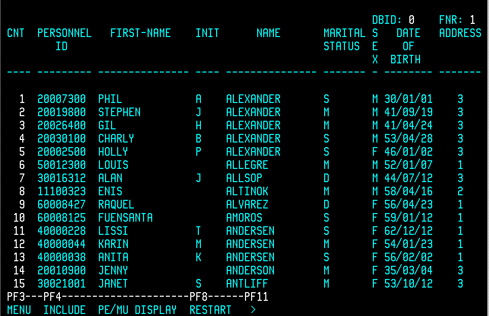 The ADDRESS column shows the number of occurences of the ADDRESS-LINE multiple value field.