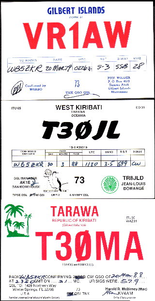VR1AW - March, 1979 My first "Western Line Islands", later Western Kiribati T30JL - March, 1988 T30MA - March, 1988 |