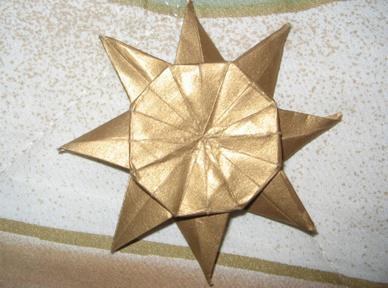| 6. Petal fold the paper that is set loose on previous step on all four flaps. | This is the star for which the instructions were originally given |