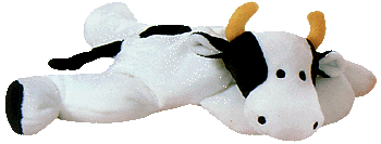 Oooh-la-la! This is my FAVORITE pillow pal of all! Meet Moo the Cow. Isn't she the most cutest?! She was introduced in Jan.1998, like most of the pillow pals, and she resembles Daisy the Beanie Baby, but with reversed coloring.