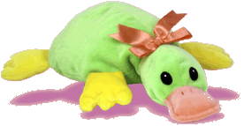 Here's the original Paddles the Platypus. She was introduced on May 30, 1998, and is known as "MOM" to Patti the Beanie Baby.