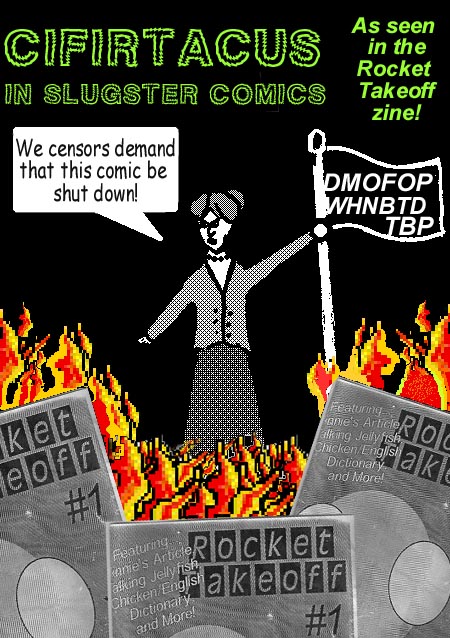 1. This comic is a bit different than the Cifirtacuses you've seen before. This book was assembled from two-page strips featured in a Sci-Fi/humor zine called "Rocket Takeoff". This is the largest collection of "old" material on the site. It's shaded in grayscale, and the artwork is not as good as the rest on the site. You've been warned.