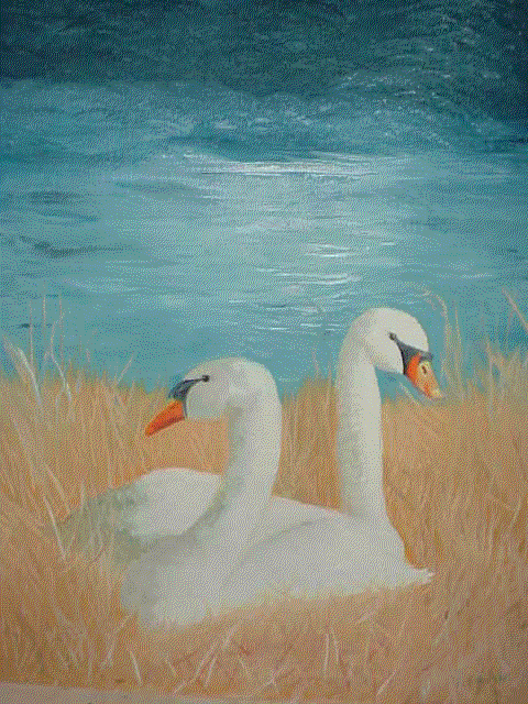 Nesting Swans=16x20 in oil $5000.00