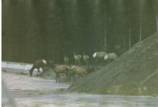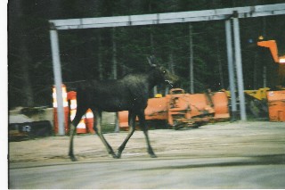 Bullmoose in the yard. There were many times that moose came close, but we were not so daring to capture a photo then. Many times when I (Martie) was weeding my flower beds, I would become startled when I notice a moose gazing at me for a time, I would get up slowly and go into safe surroundings, they wouuld venture on their own way.