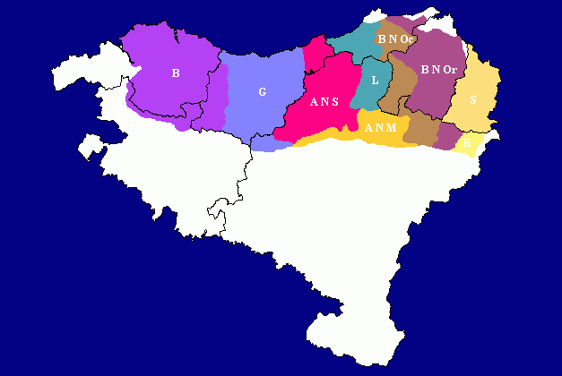 VIZCAINO Abarca no sólo Vizcaya sino incluso la cuenca guipuzcoana del río Deba y alguna zona de Alava, En los últimos 5 siglos este dialecto ha ido acentuando sus particularidades, a menudo por elecciones distintas hechas de un acervo común.
