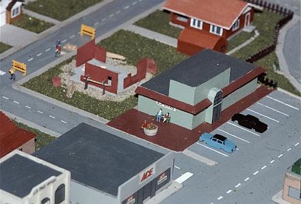 In the background is a warehouse with a small diner fronting it. A few houses occupy the foreground along with the town church. (A small section of fence is laying on the street for some reason.)