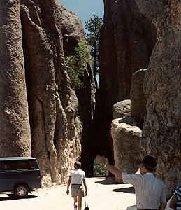 After completing the visit to Custer State Park, you have several routes to take you to Mt Rushmore. One takes you through several narrow passes through the rocks like pictured above. This route is NOT recommended for motor homes. Hey fella, get your hand out of the way.
