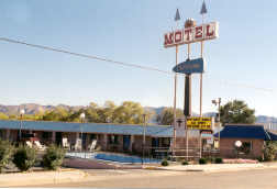 Our historical handcrafted sign points the way to newly remodeled rooms with original southwestern art.