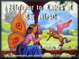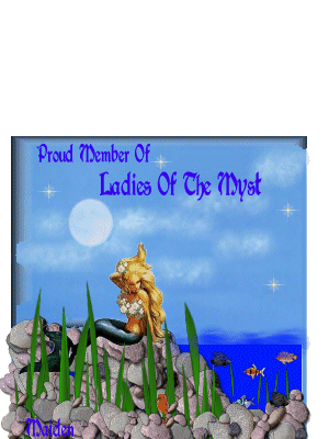 I am so very proud of all these wonderful gifts I have received from some very thoughtful people. Alot of them have come from "The Ladies Of The Myst" web ring members. When I joined it, I had no idea what a wonderful group of ladies I would meet. It is a great honor that I was accepted into their friendly circle.Their web pages are equally as thrilling, and I recommend them highly. Again my deepest thanks to all.