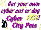 "Hello wanderer, and welcome to the meadow of cats. I am Disnor, the guardian dragon. I take care of this page for LadyKatie. Her mother is allergic to cats, so she can't have one, so she adopts as many as she can! She runs many pages for different animals. She is VERY busy. This meadow is full of cats, hence the name. LadyKatie adopted them from Candyland Cyber Adoption Links You see a very small fairie perched on your shoulder. It looks straight into your eyes and makes a strange giggling noise and flies off. "I love fairies. They are much like pets, but you'll find they have their own special personalities, if you spend as much time with them as I do! Just look around you!"