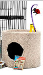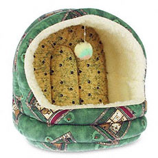 "Here is the playing section. All of the cats and kittens can come in here whenever the want to scratch up a post, clib a tree, have a cat nap, or a treat!