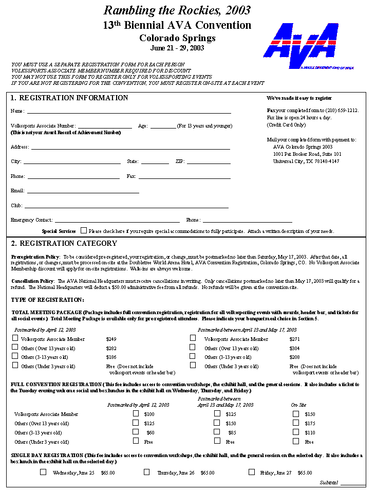 | Rambling the Rockies 2003 - REGISTRATION FORM |