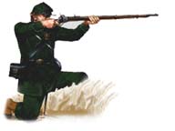 Though the name Berdan became synonymous for the sharpshooters it is not sure whether he had the original idea for a federal regiment of sharpshooters. There is some fairly reliable evidence that he got the idea from Casper Trepp, a Swiss born veteran of the Crimean war where sharpshooters fought as skirmishers and as special detail troops. What is certainly known is that Berdan promoted the idea. On the 14th of June,1861 Colonel Hiram Berdan finally got authorisation to raise a fighting regiment of Sharpshooters. By September the 24th the 1st regiment (10 companies) had been formed and had arrived in Washington. Colonel H.Berdan was further authorised on the 28th of September,1861 to form a second regiment, since so many volunteers had been successful in passing the high minimum standard for the 1st regiment. The test was that a volunteer had to shoot at 200 yards ten rounds into a bulls eye target and the average of between the center of the hole left by the Minnie-ball and the center of the bulls eye must not exceed five inches plus the necessity for excellent references culminated in 1,392 successful aspirants (officers and men). For the first regiment of United States Sharpshooters commanded by Col. Berdan and 1178 (all ranks) in the second regiment United States Sharpshooters commanded by Col. Henry A Post. The 2nd United States Sharpshooters had recruited by company from 8 different states and unusually had eight companies instead of the usual 10 to a regiment. Two qualified contingents of Massachusetts men decided at the last minute to offer there service to there home state, not to Berdan, had they joined they would of made up the last two companies in the 2nd regiment, giving it a full compliment of ten companies instead of the eight it had. These two companies became known as the 1st & 2nd companies of Massachusetts Volunteer Sharpshooters, they fought through the war attached to sundry bay state regiments. The 1st & 2nd regiments of United States sharpshooters were organised to fight primarily as skirmishers and as long range marksman, to be used in advance of the main body or to the flanks, to engage the enemy first to halt their advance, as well as to give early warning of their approach. The Sharpshooters were often called upon to act as individuals, professional snipers, who equipped with rations, water and ammunition sallied forth in the morning to the front line. where, hidden by the foliage of the trees, they looked for such vital targets as Officers and artillery men. November 1863 in the area of the 10th New York Cavalry, was only typical of many incidents. An Artillery officer complained that a Confederate Sharpshooter was picking off his men and horses. The Sharpshooter detailed to "get the Confederate" was a tall, stooping, ungainly looking specimen, who carried an immense rifle with a telescopic sight running the length of the barrel, over his shoulder. He shambled along under cover of the trees until passed just beyond the skirmish line. Stationed behind a large tree, he watched intently at a tree near the bridge which crossed the little stream in our front, along which the rebel line extended. Presently he brought the immense rifle to his shoulder, the report of its discharge was blended with those of the carbines on either flank, and those watching the proceedings saw a man fall from the tree. A few moments later the rebels fell back, and as part of the regiment passed the spot in pursuit, the lifeless form of the rebel sharpshooter was seen lying as he had fallen, a victim to the mode of warfare of which he himself had chosen. Both regiment's of the United States Sharpshooter's fought in all the battle's of the Army of the Potomac (and fought well) usually being assigned by company to different command's as needed. Of the 1,392 officer's and men in the 1 St regiment, 546 became casualties, the 2nd regiment lost 462 killed and wounded out of 1,178. August 1864 theist regiment began to disband mostly due to the soldier's term of enlistment having expired. In September the greatly reduced 1st U.S.S.S formed into battalion which lasted until December, then most men except those from Michigan (who were sent to the 5th Michigan infantry regiment) were re-assigned to the 2nd U.S.S.S. Order's were received on February the 20th 1865 that the 2nd regiment was to disband also, any men with time left to serve where assigned to units bearing their native designations, it is noted that Charles N. Race, of Owosso, Michigan, of Company "K", who was one of the youngest soldiers in the Union service, having mustered in 1862 at the age of 14, was the only Berdan Sharpshooter of the original members remaining as a Sharpshooter until the end of the war, July 17th, 1865. The 2nd regiment of United States Sharpshooter's had been engaged in 65 actions. When finally disbanded, Gen.Regis De Trobriand issued the following valedictory order: Headquarters, 3rd Div., 2nd Army Corps February 16, 1865 General order 12 The United States Sharpshooters, including the first and second consolidated battalions being about to be broken up as a distinct organisation in compliance with the order from the War Department, the Brigadier General commanding the division will not take leave of them without acknowledging their good and efficient service during about three years in the field. The United States sharpshooters leave behind them a glorious record in the Army of the Potomac since the first operation against Yorktown in 1862 upto Hatchers Run, and a few are the battles or engagements, where they did not make their mark. The Brigadier General commanding, who has had them under his command during most of the campaigns of 1863 and 1864, would be the last to forget their brave deeds during that period, and he feels assured that in the different organisations to which they may belong severally, officers and men will show themselves worthy of their old reputation; with them the past will answer for the