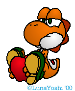 Welcome to the Yoshi Art Gallery! I have plenty of artwork to show to you drawn from a great Yoshi artist, Luna Yoshi, and these artworks are all copyrighted, so please don't take any of the artwork without permission from the original artist. Yeah, I do Yosh iart, too, and I show 'em off to my friends and give 'em away,but I can't put 'em online because I don't have a scanner. ^_^` Sorry guys. All other Yoshi artists, you are welcome to send me your artwork. Click on the hyperlink of the art you want to see. Sorry, but some of the art won't show up. Usually, if you use Internet Explorer or some sort, you'll only find a Xoom logo.