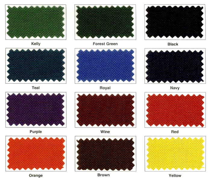 NOTE: When picking colors please take into consideration that everyone's monitor colors look a bit different and also that dye lots in both the fabric and the webbing can differ slightly with each shipment that we receive. Extra charges may apply to colors that have to be special ordered. If you have questions about any of the colors listed above please email us.