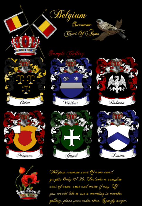 Order a Belgium surname coat of arms email graphic for only $17.99. No surname list is ever complete please contact us if your name is not in the list