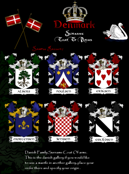 Order a Danish surname coat of arms for only $17.99. No surname list is ever complete please contact us if your name is not in the list Add the supporters of your choice for $5.00. Visit the GALLERY