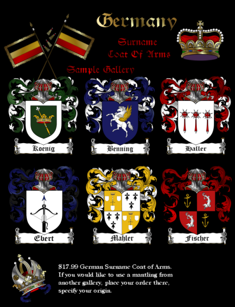 Order a German surname coat of arms email graphic for only $17.99. No surname list is ever complete please contact us if your name is not in the list
