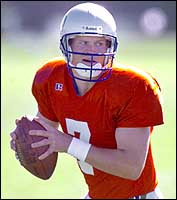 It's a world of promise and expectations only the marquee players in the league are expected to carry. It's a foreign land for someone who has lived his life as the underdog, as an overachiever once too small to play for his junior high school football team and who didn't start at quarterback until his senior year in high school. Kitna’s total of 324 completions was a career-high and ranks second in Bengals history behind Jeff Blake’s 326 in 1995 ... His career-high yardage total of 3591 ranks fifth in team history and was the team’s highest since Jeff Blake had 3624 in 1996. Kitna’s previous high was 3346 yards while starting 15 games for Seattle’s AFC West championship club in 1999 ... Jon kitna posted career highs in 2003 in completions (324), passing yards (3591), TD passes (26), completion percentage (62.3) and passer rating (87.4) ... His plus-11 differential in TD passes (26) against INTs (15) was the best for a Bengals QB with 20 or more TD throws since Boomer Esiason hit plus-17 in 1989 ...Was the only NFL QB in 2003 to play every offensive snap for his team. Seventh-year pro had his finest NFL season ... Though his statistics in 2002 were solid, his ’03 performance earned him Comeback Player of the Year honors from Associated Press and Pro Football Weekly, due to his leadership role in Bengals’ NFL-best six-game improvement (from 2-14 in ’02 to 8-8 in ’03) ... |
