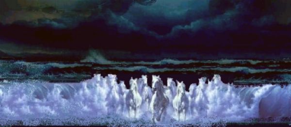 Suddenly the waves took form and an un numbered amount of white transparent horses