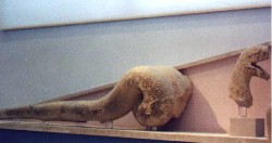 Amazon (left) falling instantly in love with Theseus, the hero of Athens. Note the similarity of headgear and facial expression to the statue of Athena, above. Below, right: Python from one of the Pediments of the Parthenon. (Two weeks after I knew I was going to Greece I dreamed a huge python was in my house. At the time, I had no idea why . . .)