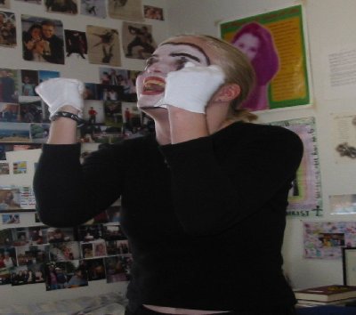 Want to know more about my mime ministry? Click Here to go to my website on it More "Watch the Lamb" Pics Doing "Watch the Lamb" at Chapel Hill Cemetery on April 20, 2003 Home