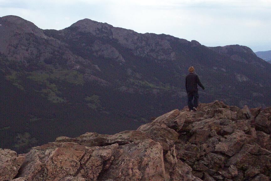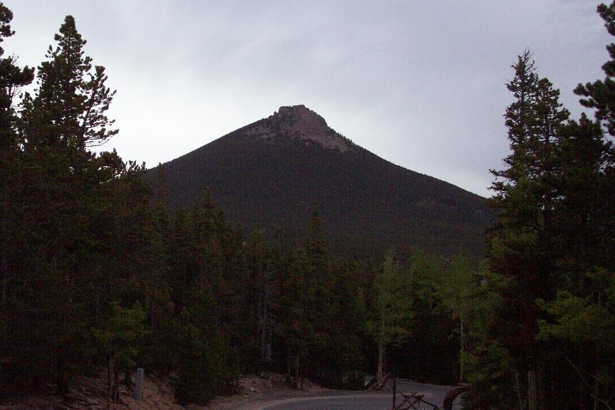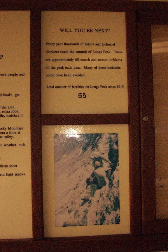 Right after we saw that sign, we went to the ranger station to get a map. We asked him how long the climb to the summit of Longs peak would take. He replied with usually between 9-12 hours (it was like 2pm) and right now its still frozen, so we would need ice picks and spiked shoes (we had old running shoes and a backpack with a water bottle in it). The highest peak off that trail was Estes cone, so we went on to conquer that