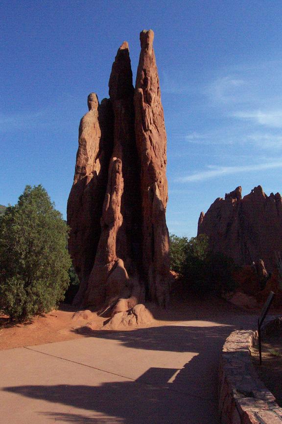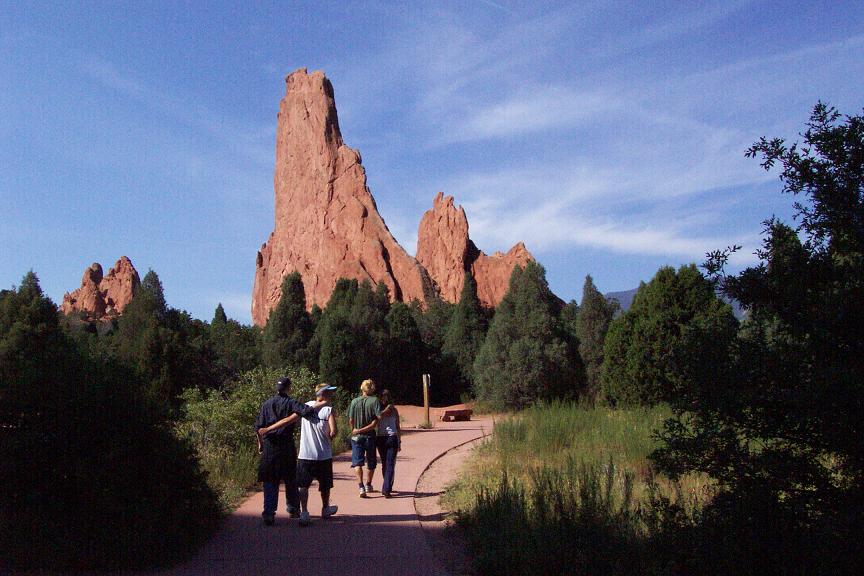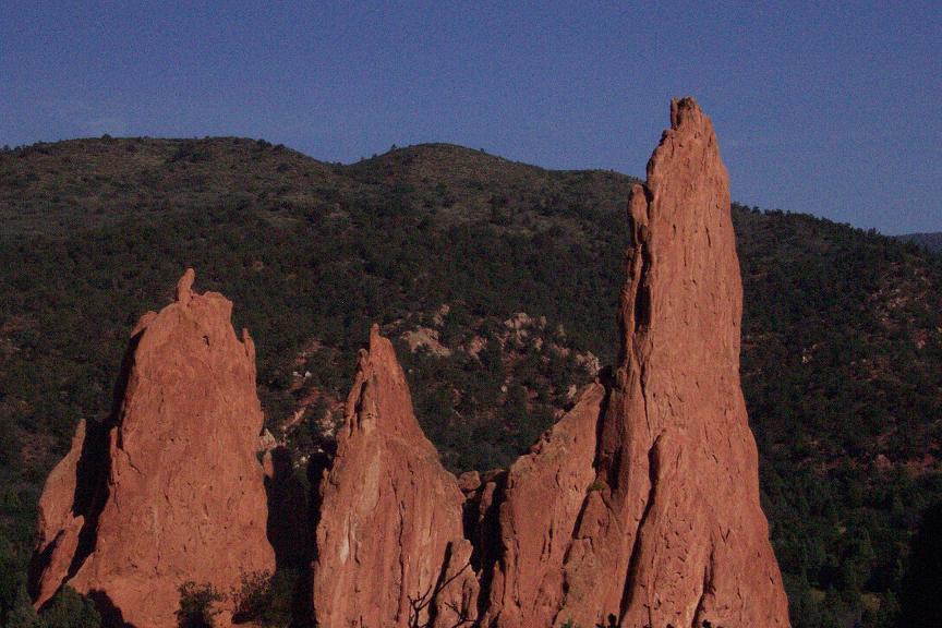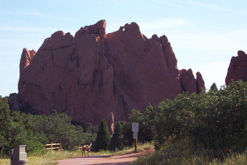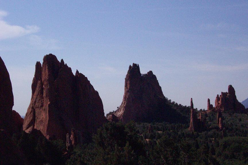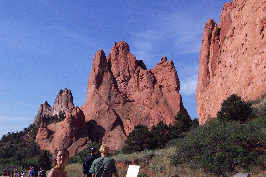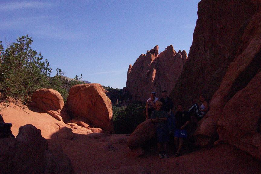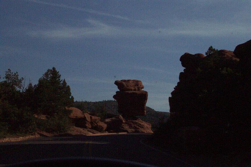I finally had a day off from work, so we decided to try to make another trip while we all could. After I got home we changed the oil, with the help of the apartment manager and about 4 of the construction workers in our parking lot, all of who we so nice to spend so much time looking for the right size wrench to get the plug out. We left right in time to make it to Denver rush hour, and the 90-100 mile trip took over 3 hours!! Upon arriving in Colorado Springs at around 7:30, we got some dinner at Denver founded Quizno's and started looking for a campsite before it got too dark out. Finding a campsite took us FOREVER, and we ended up having to pay a bunch of drunks who rented out an entire camp ground to let us take a site. The first place we tried to visit with a bunch of Native American cave dwellings did not open for another 30 mins after we arrived, but our next stop, Garden of the Gods was a pretty cool place as you will see