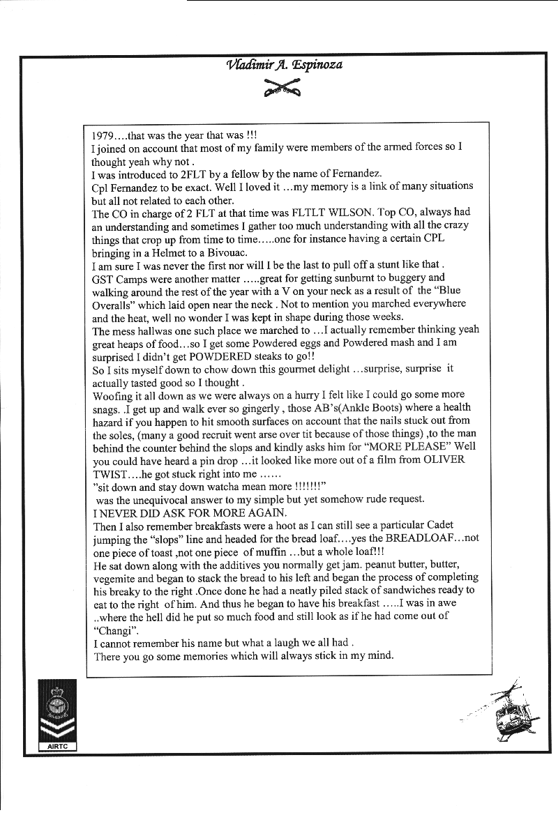 I have quite a few good memories of the ATC days and still keep in touch with a few other ex members on the flight. I also have a few photos which I will scan and send as soon as I get a chance.