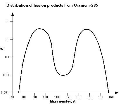 U-235 + n ===> Ba-141 + Kr-92 + 3n + 170 MeV