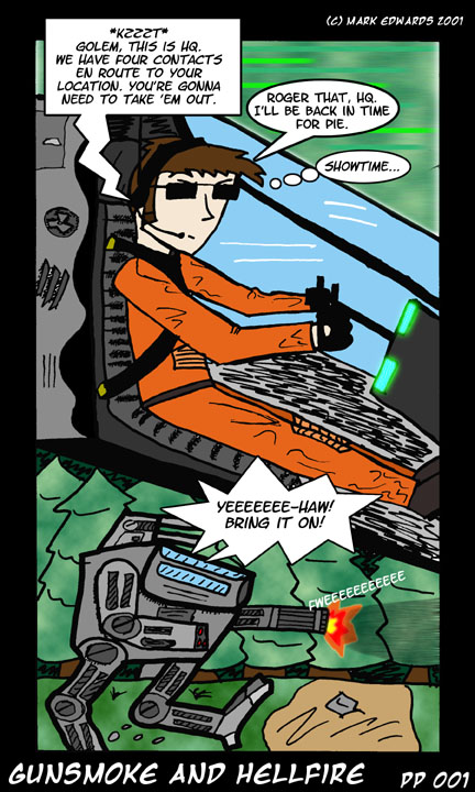 "Gunsmoke and Hellfire - page 1" - inked lineart coloured in photoshop