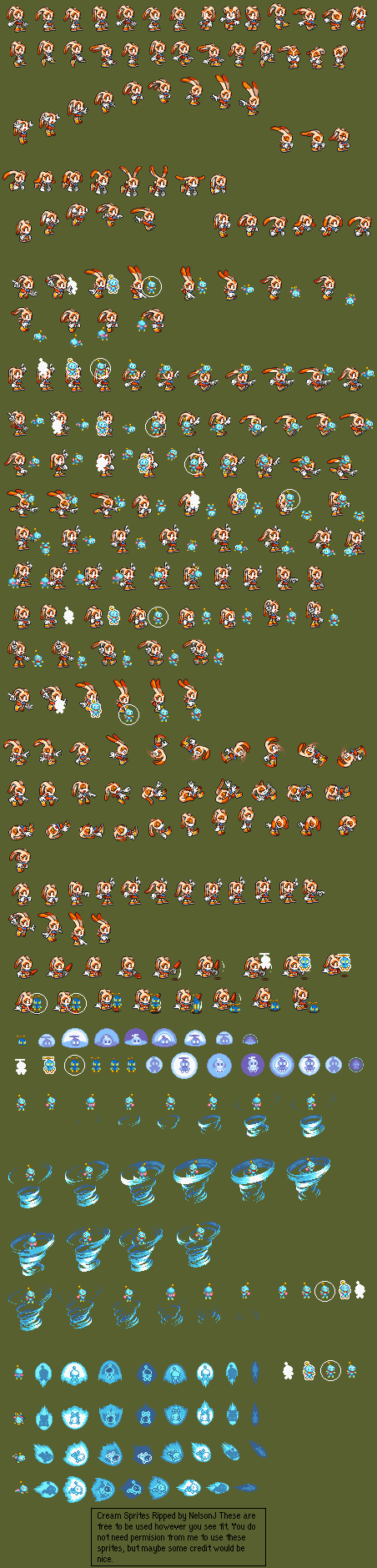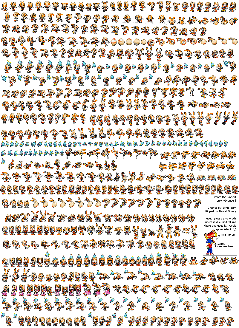 The Cream, Knuckles and Amy Rose sprite sheets were ripped by Daniel Sidney!