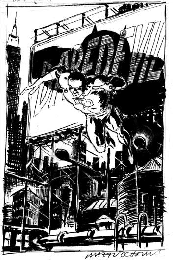 Dave Mazzucchelli did not sell any of his Daredevil pages, however he did have a couple of the cover prelims...