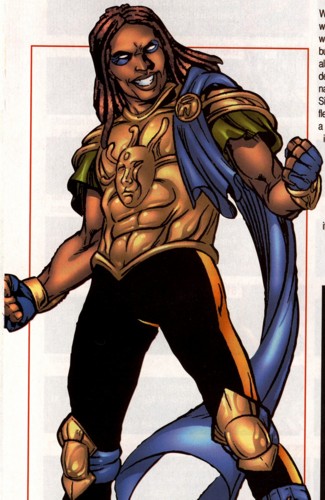 Aegis Breastplate: Mn material, Trey's powers come from the mystical Aegis breastplate which he wears. It gives Aegis the following power stunts: