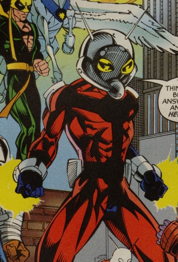 -Insect Communication and Control: Rm ability to command ants and other insects. He often rode a flying ant (Fe Flying speed) and could command swarms of insects to attack foes (causing only Pr damage but forcing the opponent to make a Green Psyche FEAT. to ignore the pesky bugs). As a power stunt, he could also instruct his entomical friends to arrange in patterns which could spell out messages.