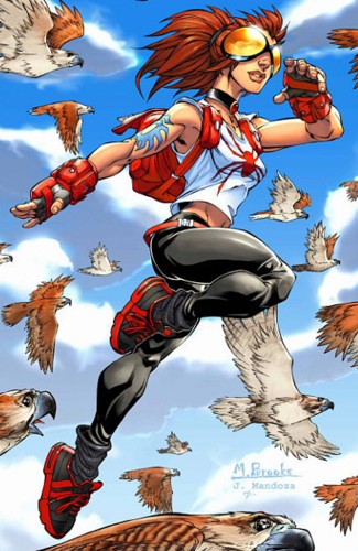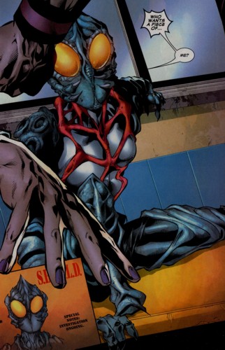 Carapace Armor: In material, gives Araņa In Body Armor. She can summon a blue exoskeleton carapace that emanates from the tattoo on her upper arm; she can control the thickness, coverage, and shape of the carapace. At its thickest, it is resistant to small firearms. However, when using full armor, contact with water leaves her unable to breathe, forcing her to retract it.