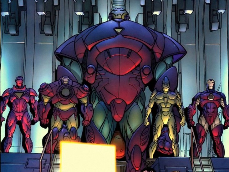 Sometime after the Extremis transformation, during at attack by the new Super-Adaptoid, Tony Stark realized he could command several armors at once. Building on this, and realizing the world was becoming an increasingly dangerous place, he decided to construct a "team" of Iron Men - hyper-advanced drones that would be under his direct mental command, just as his own armored body. Unfortunately, the "Argonauts" were abused and destroyed before they ever could serve for good. They included: